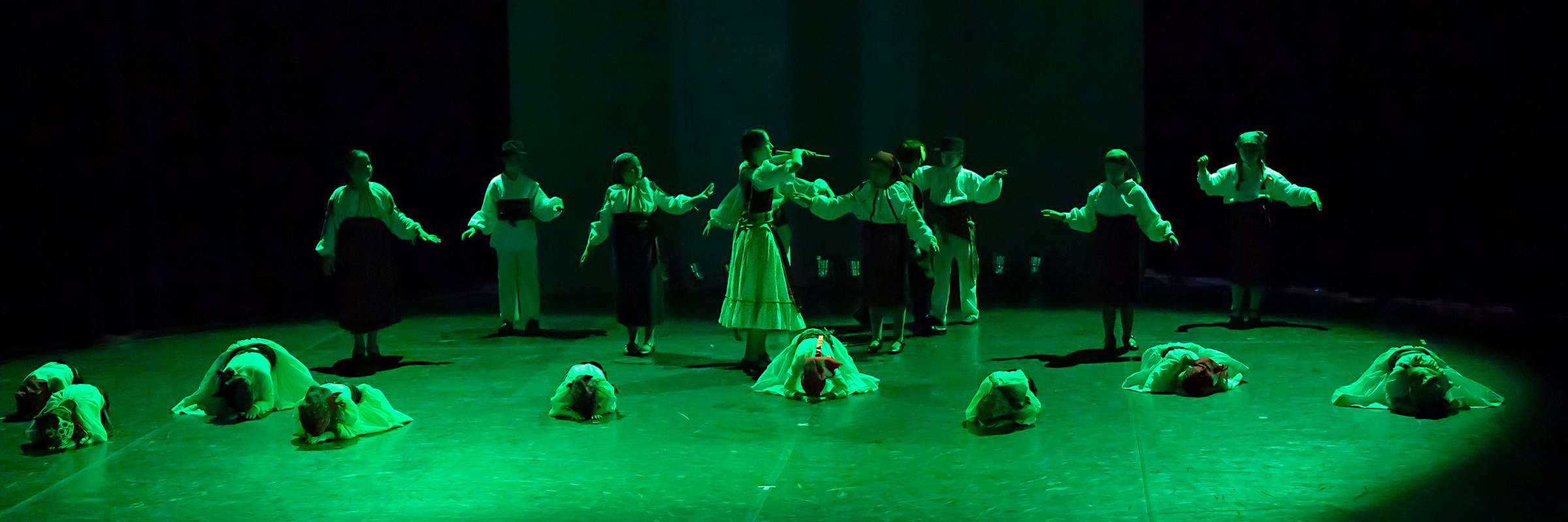 Aranyvasárnap ismét szalagavatón szerepeltünk. Csángú hejgetés címmel minden irányból, rálátásában is élvezhető koreográfiával készültünk. A 6-18 éves korosztályt átívelő csapat ügyesen adta elő a nagy tereket bejáró, intenzív, komoly belső erőket, közös lélegzést, lüktetést igénylő pródukciót.